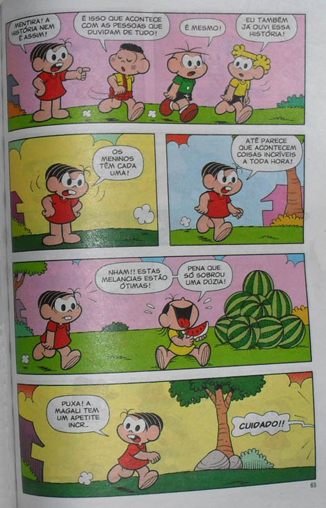 Os traços também são muito bonitos. Curiosamente, outro fato que não existe mais atualmente é o Cascão brincar no lixão. Enfim, história sensacional que sempre vale a pena relembrar. Nas imagens da postagem, coloquei a história completa. A propósito, a capa dessa edição também é espetacular. Toda perfeita.