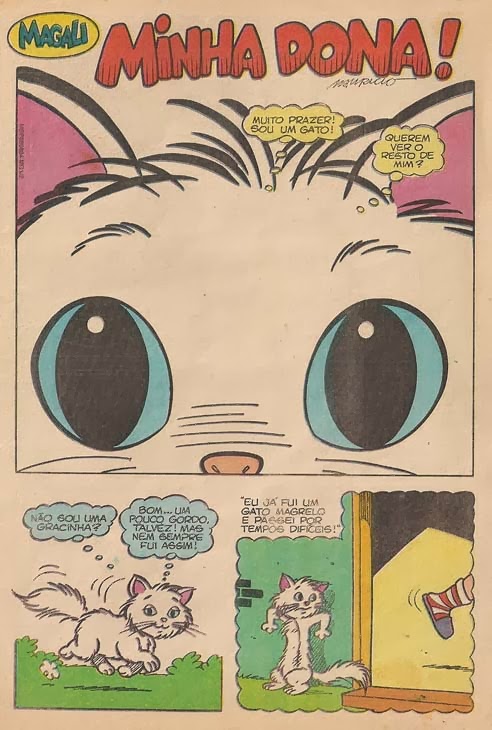 A hq "Minha dona" é linda, chega a até dar pena do gato com fome. O Mingau tinha hqs excelentes, adorava principalmente quando ele ia para rua, fazendo amizades com outros gatos. Hj, as hqs deles são muito repetitivas q nem do Bidu. É só ele em casa, extremamente doméstico e perturbando a Magali. Sempre a memsma coisa.