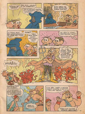 Dos trabalhos de Mônica, gostei, sobretudo, do Floquinho como Cérbero. Sobre a ida ao inferno... que bom que, naquela época, o MSP não tinha frescuras com isso.
