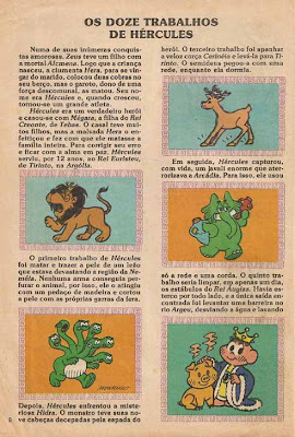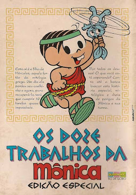Sem dúvida "Os doze trabalhos da Mônica" foi uma edição espetacular, não só pela história fantástica e de alto nível, mas também pela oportunidade dos leitores conhecerem as curiosidades da Mitologia grega. Com certeza um grande marco da MSP, que sempre vale a pena ser relembrada. Dá pra ler, tanto a história completa, quanto as curiosidades da Mitologia Grega no site oficial da Turma da Mônica. Termino a postagem com uma propaganda anunciando esse gibi que saía nos gibis de 1991: