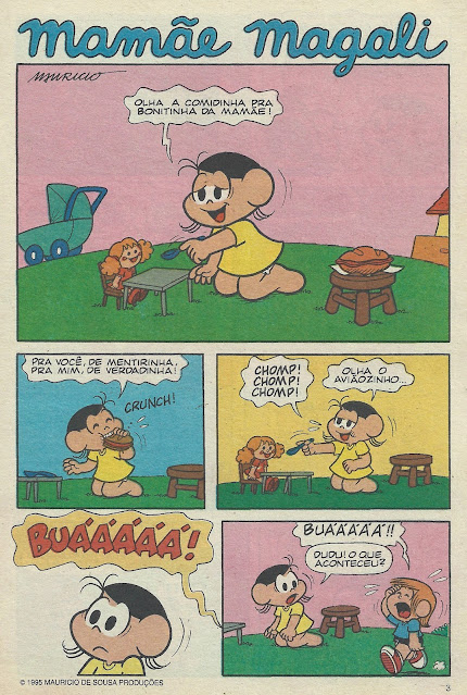 História legal em que o Dudu cria plano infalível de inventar que sua mãe, Dona Cecília, o abandonou e acha que a Magali seria sua nova mãe perfeita porque sabe que ela não ia dar comida para ele por não querer dividir comida com os outros. Só que ele não gostou da Magali de dar banho nele e resolve voltar para Dona Cecília, apesar de ela sempre ficar dando comida para ele. Apesar do trabalho que teve com o Dudu, a Magali gostou e ficou com saudade de ser mãe e quer ter os seus próprios filhos.
